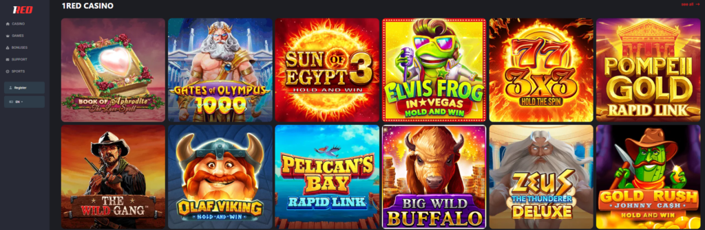 1RED is an offshore-licensed online casino positioned toward players looking for large bonuses and flexible payment methods. The platform offers a wide range of slot games, live dealer tables, and crypto-friendly transactions, making it appealing to users who prioritize variety and promotional offers.